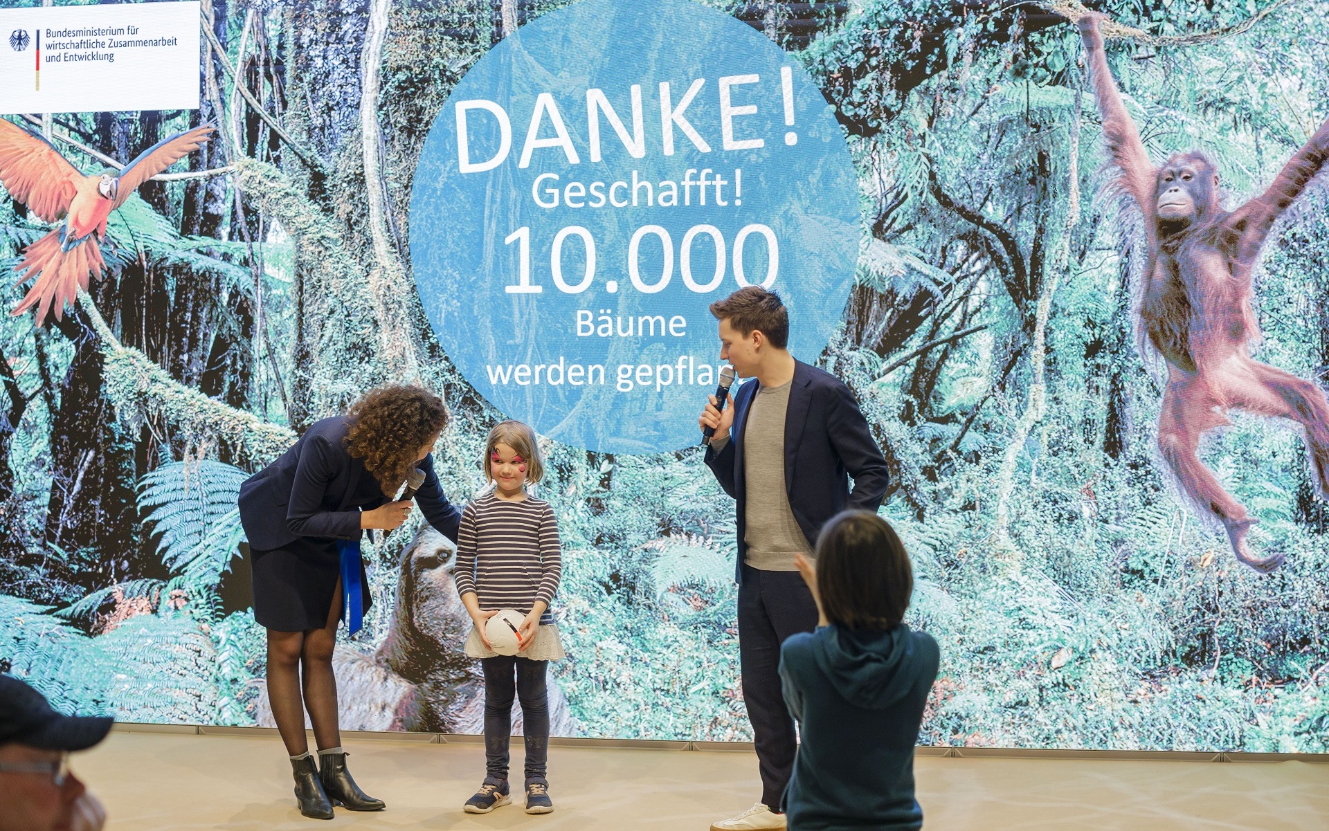 Besucher*innen konnten sich also nicht nur über den neusten Trend von Heuschreckenchips oder digitaler Landwirtschaft informieren, sondern auch über die soziale, wirtschaftliche und klimatische Bedeutung von Wäldern. An interaktiven Modulen des BMZ-Stands konnten Besucher*innen Punkte sammeln, zum Beispiel bei Spielen – und letztendlich die Entscheidung treffen, ihre Punkte gegen ein nachhaltiges Give-away einzutauschen oder sich an der Spendenaktion zu beteiligen und die Punkte für einen Baum in Vietnam zu spenden. Ziel: Nicht nur konkret eine wichtige Aufforstung zu realiseren, sondern auch für ein nachhaltiges Konsumverhalten sensibilisieren.