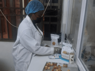 Wir bauen Kokosnüsse an, dann verarbeiten wir sie, und die Frauen vertreiben unsere fertigen Produkte über unsere Vertriebskanäle. Ich befinde mich derzeit in einer unserer Vertriebsstellen, dem Kokari Café. Unser gesamtes System basiert auf einer digitalen Plattform, die beim Erfassen von Daten hilft, vom Eingang der Rohstoffe bis zum Ausgang der Rohstoffe an alle Verkaufsstellen.