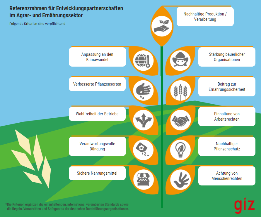 Die Ziele für nachhaltige Entwicklung der Agenda 2030 und die Umsetzung des Pariser Klimaabkommens können nur in Zusammenarbeit zwischen öffentlicher Hand, Zivilgesellschaft, Wissenschaft und insbesondere dem Privatsektor erreicht werden. Die deutsche Entwicklungspolitik nutzt die Zusammenarbeit mit der Wirtschaft, um gemeinsam verantwortungsvoll in den Agrar- und Ernährungssektors in Entwicklungs- und Schwellenländer zu investieren.