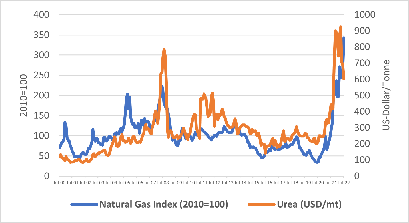 Steht uns das Schlimmste noch bevor? Im Jahr 2022 dürfte das Schlimmste zwar überstanden sein, aber nächstes Jahr könnten wir vielleicht schon am Scheideweg stehen. Die Gründe sind bekannt: Die Erdgaspreise klettern weiter nach oben und treiben den Preis für Harnstoff so weit in die Höhe, dass die Landwirte weltweit aus dem Markt gedrängt werden. Selbst die Hersteller von Harnstoff haben damit begonnen, ihre Produktionsstätten zu schließen oder ihre Kapazitäten zu reduzieren. Bei den derzeitigen Erdgaspreisen ist die Produktion dieses Düngemittels unwirtschaftlich geworden. Bei der nächsten Ernte ist daher weltweit mit einem massiven Rückgang zu rechnen.