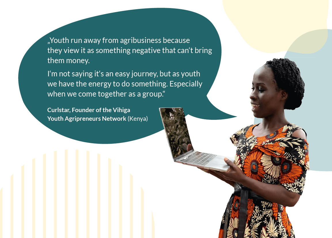 Deshalb braucht die (ländliche) Jugend Afrikas bessere Beschäftigungsmöglichkeiten im Agrar- und Ernährungssektor. Allerdings fehlt es den jungen Menschen oft an wichtigen Instrumenten wie Zugang zu Informationen/Beratung, Startkapital und Märkten, Netzwerken und geeigneten Schulungen.
