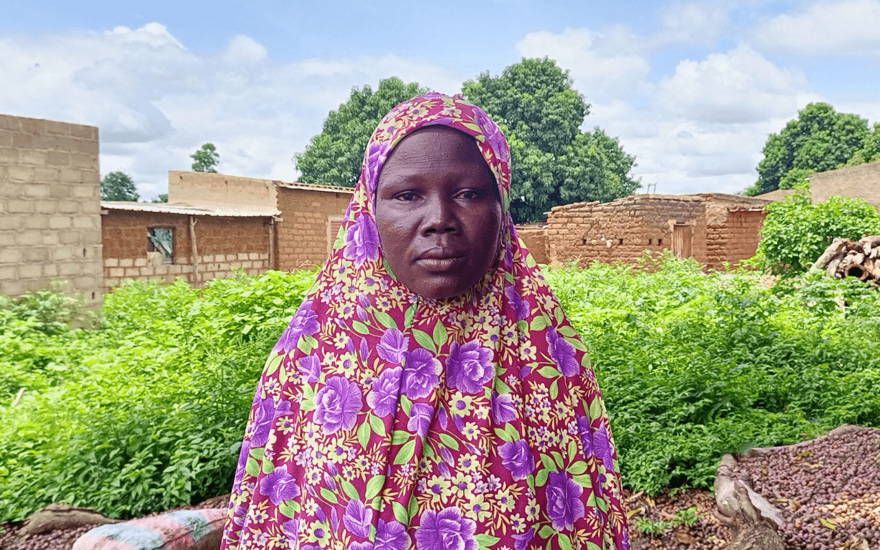 „Ich stamme ursprünglich aus Bourzanga in Burkina Faso und bin wegen der unsicheren Lage nach Badara Pindié geflohen. Wir haben all unser Hab und Gut verloren. Anfangs war es schwierig, ohne Land zu wirtschaften. Jetzt habe ich Zugang zu einem Stück Land, um meine Familie zu ernähren.”