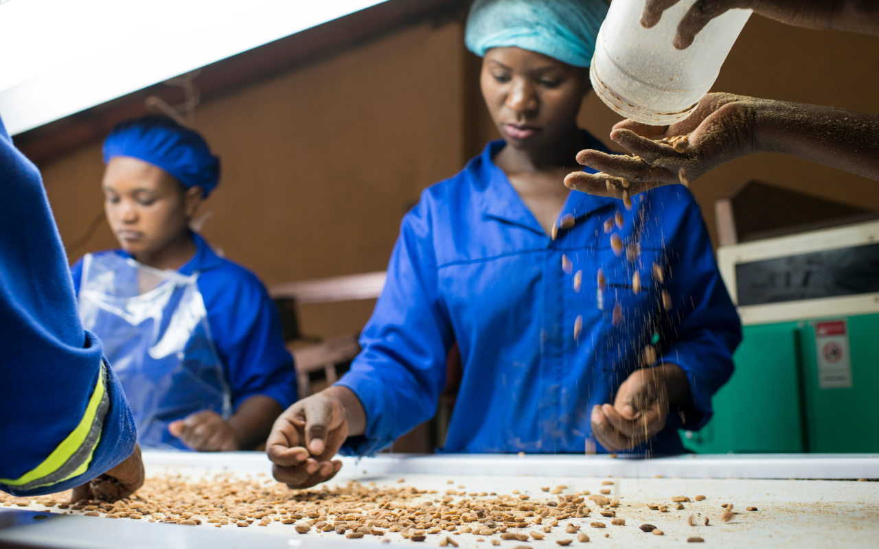 Verarbeitung und Sortierung von gerösteten Erdnüssen in Chipata Sambia © GIZ / lab of tomorrow