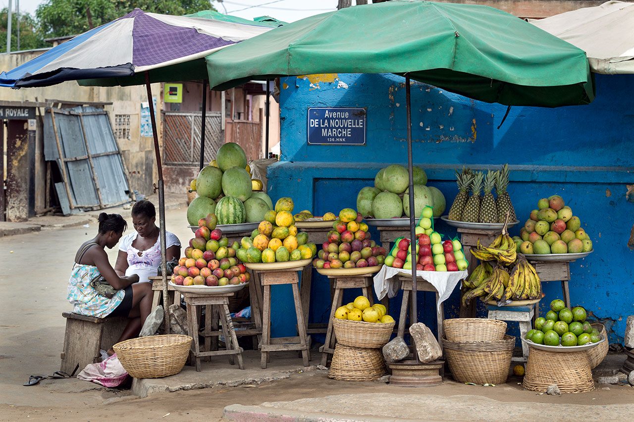Republic of Togo: a vegetable and fruit stand near the city center of the Togolese capital Lome. Photo: Christoph Püschner / Bread for the World
