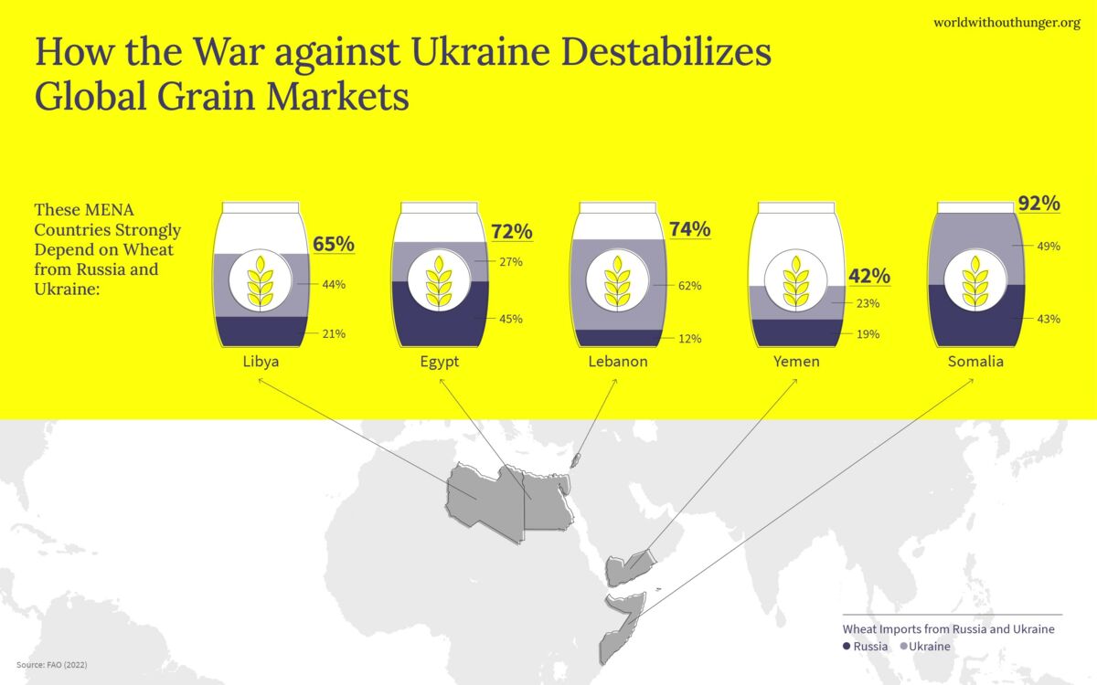 Russia’s war of aggression on Ukraine has not only caused destruction, suffering and the largest refugee movement in Europe since World War II – it has also had a noticeable impact on global agricultural markets already. An overview, which countries are affected most severely by the destabilized grain markets, and what comes next.