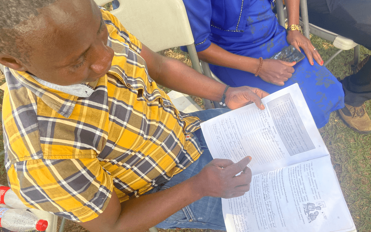Einer der jungen Unternehmer der an der heutigen Exkursion teilnimmt ist Mark Samson, ein 32-jähriger Landwirt aus Lilongwe. Er strahlt, als er von seinen neuen Erkenntnissen berichtet. „Heute habe ich eine Menge gelernt“, erklärt Mark, während er durch die Seiten seines PI Schulungshandbuch blättert. „Von praktischen Tipps zur Kompostierung bis hin zu umfassenderen Einblicken in die Entwicklung von Geschäftsvorhaben und Wertschöpfung, um meinen Traum zu verwirklichen.“