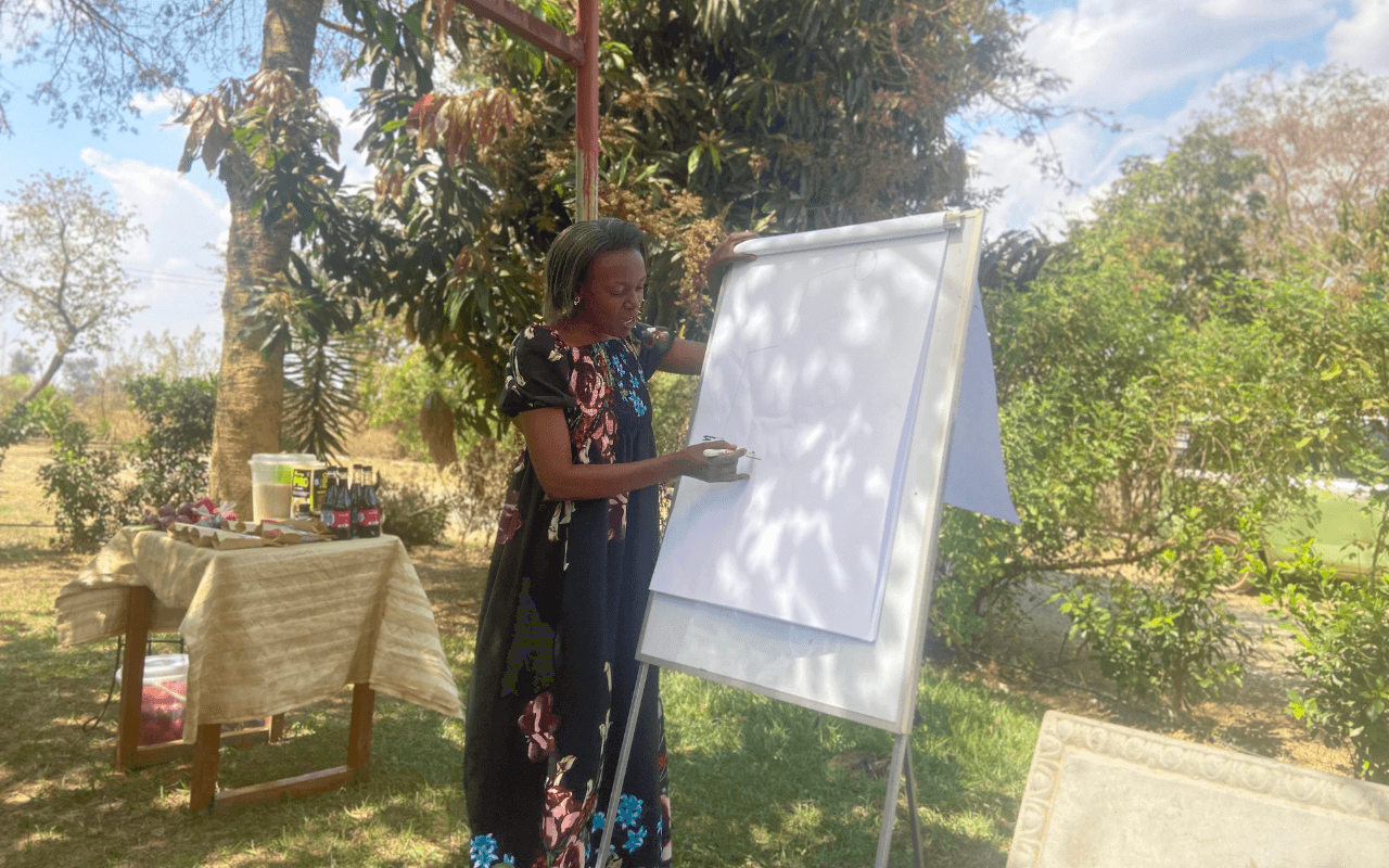 Ngabaghila ist eine von nur zwölf Ausbildern in Malawi, die zur Durchführung des PI-Coachings qualifiziert sind, und sie nimmt diese Verantwortung sehr ernst. Aus eigener Erfahrung weiß sie, welche Herausforderungen die jungen Unternehmer*innen, insbesondere Frauen, in ihrem Land zu bewältigen haben. Als verärgerte Bauern die Felder niederbrannten, auf denen die von ihr ausgebildeten Frauen Gemüse anbauten, ließ sie sich nicht entmutigen. Sie machte einfach weiter. Die Bauern hatten bemerkt, dass die Frauen allmählich ein besseres Einkommen erzielten als sie selbst, und zerstörten aus Frustration die Felder.