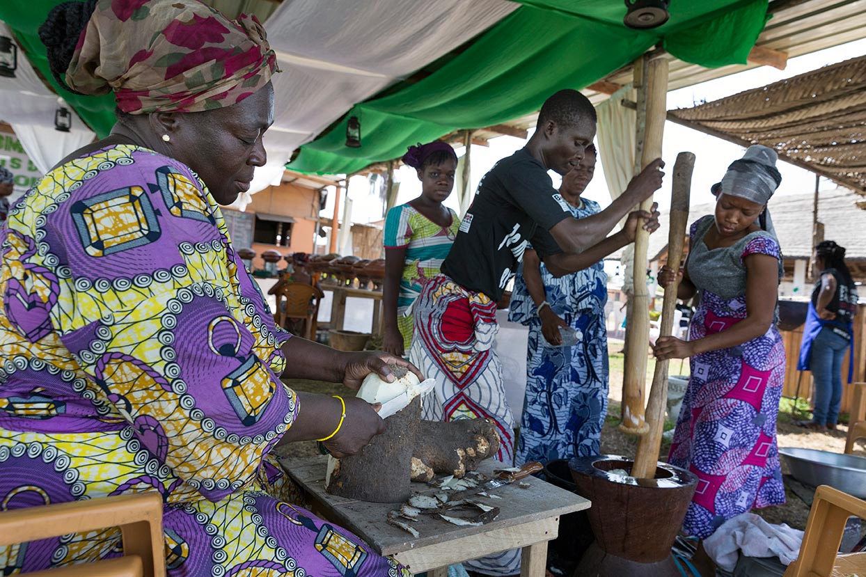As skilled a cook as Catherine is, it’s not every day that she finds herself simultaneously handling four separate fires. But this week, she is one of the volunteers at the "Alimenterre" food fair in the Togolese capital of Lomé. The name is a combination of the French words for "food" and "earth". At the annual event, OADEL, a partner organization of Brot für die Welt, presents food from local farmers. This includes the dishes that Cathérine and the other women prepare fresh every day.