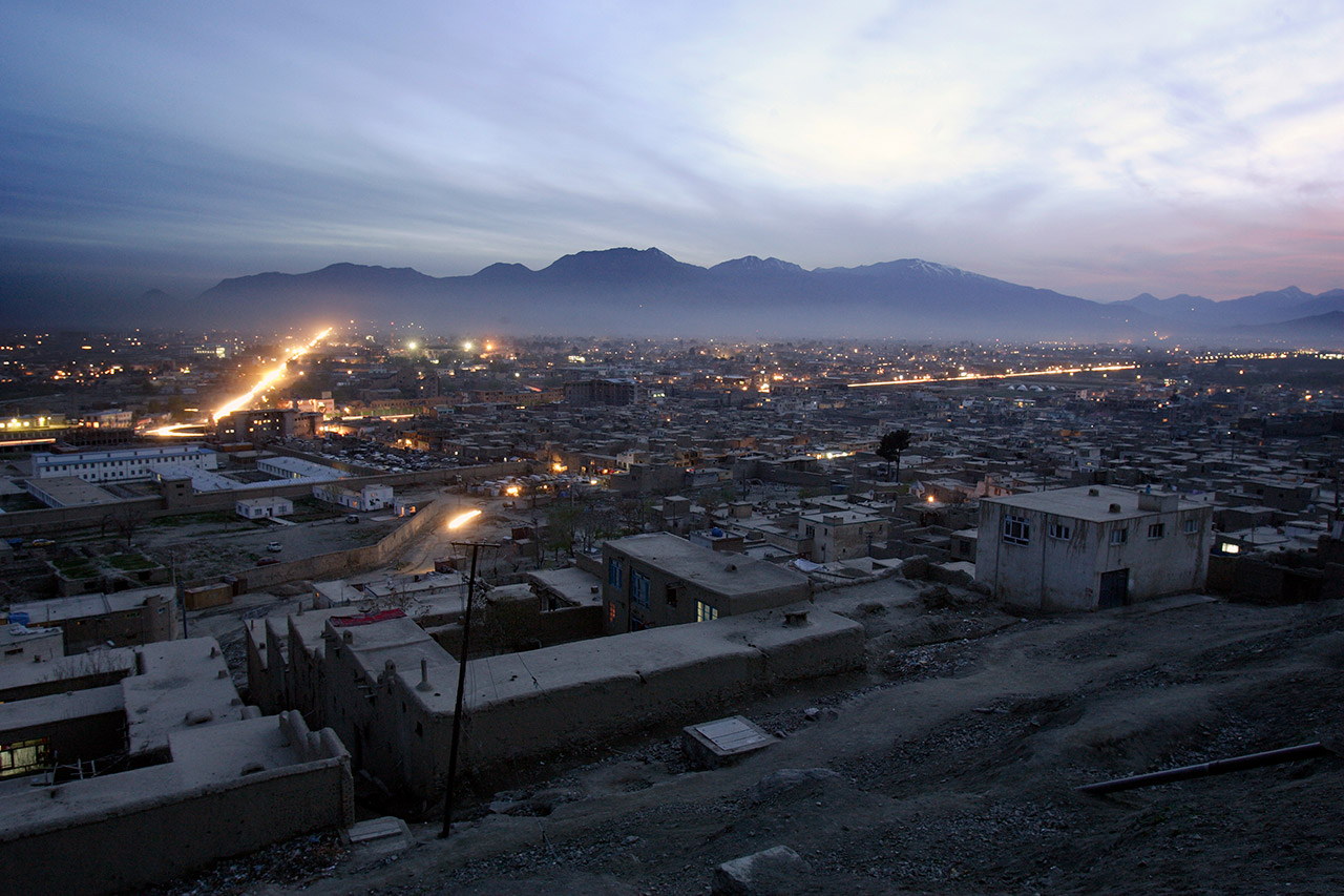 Blick vom Berg Kohi Asamayi (TV Hill) auf süd-westliche Stadtteile Kabuls in Abendstimmung. (c) Christoph Püschner